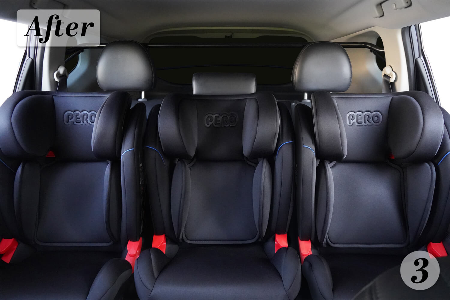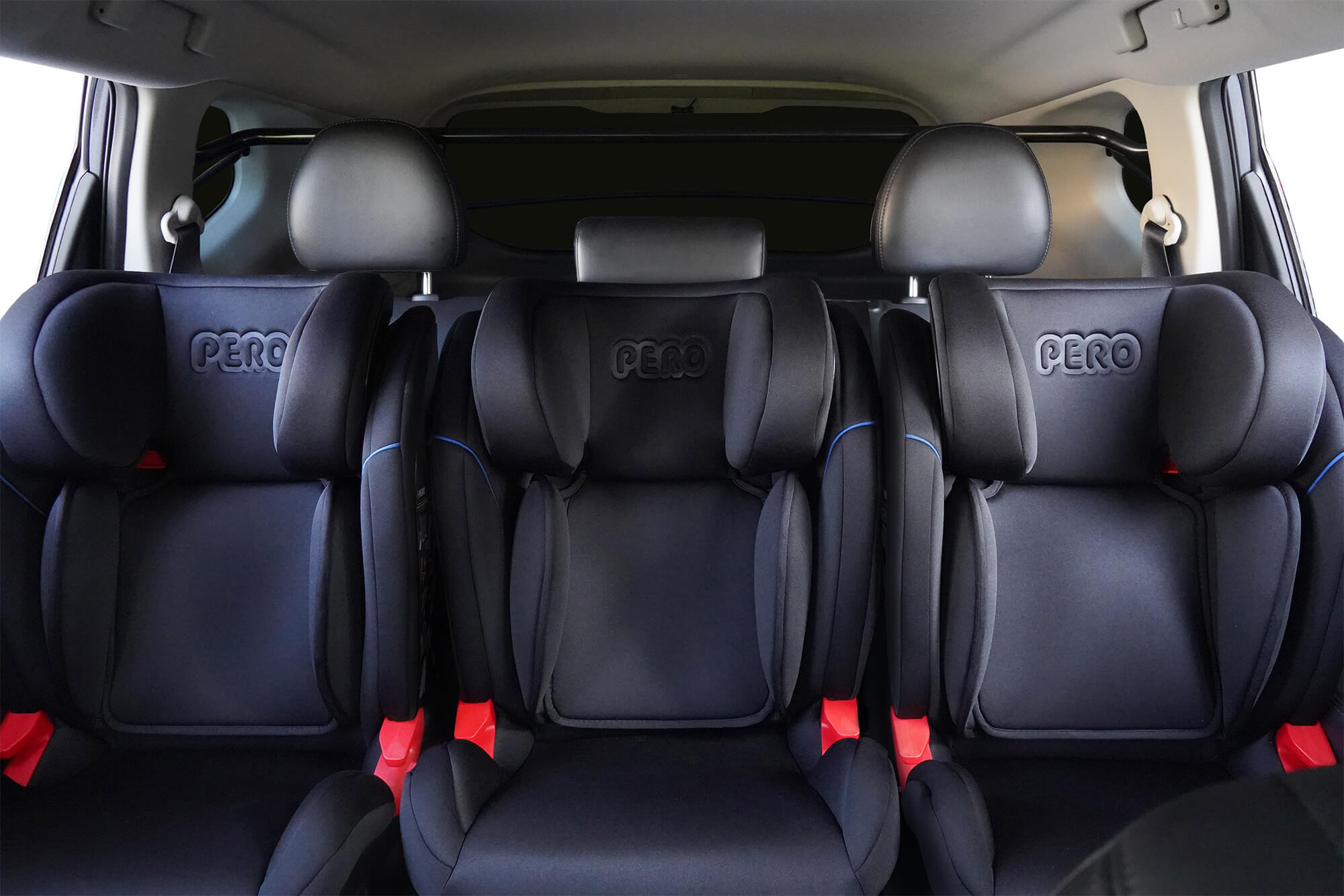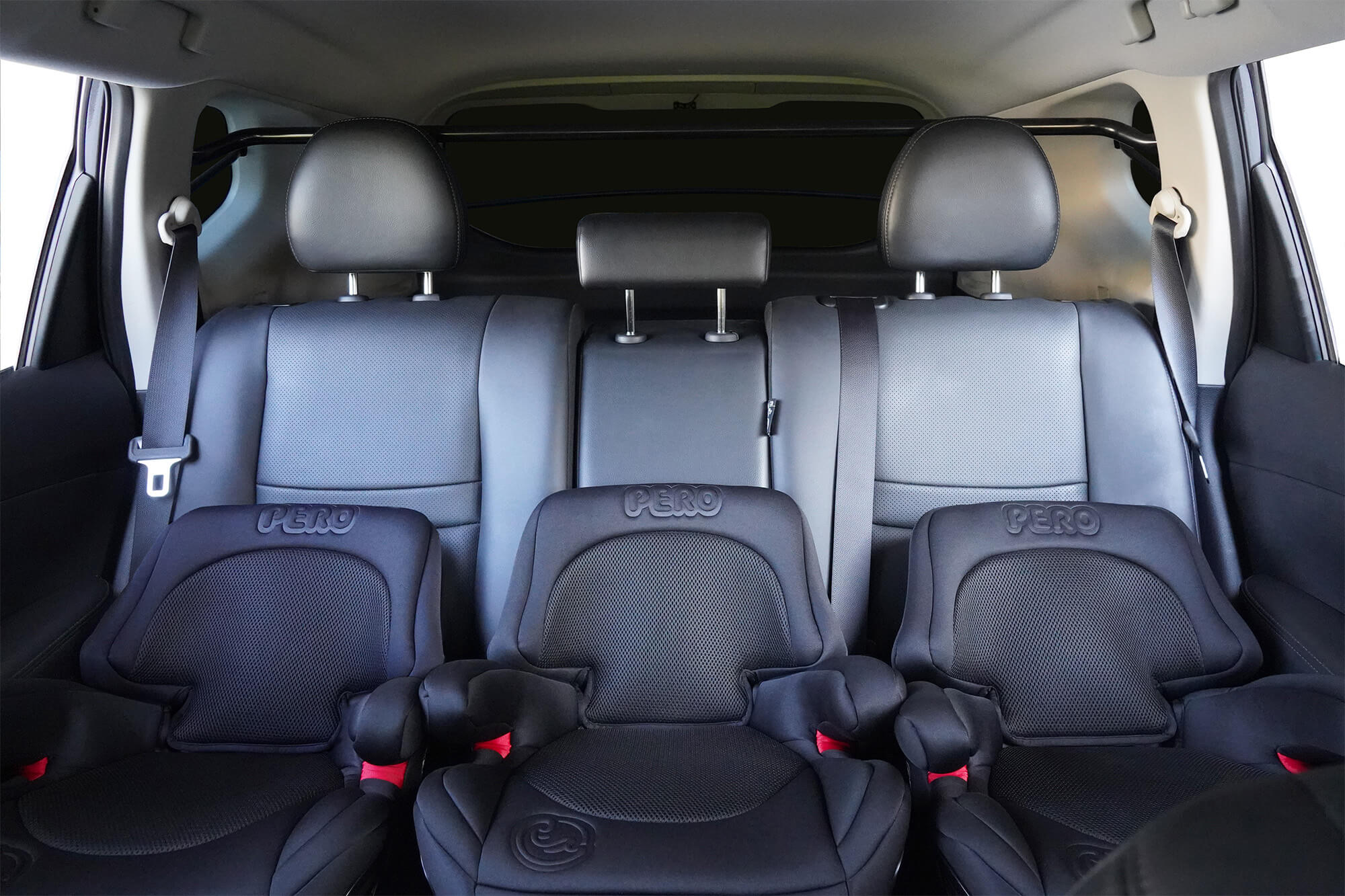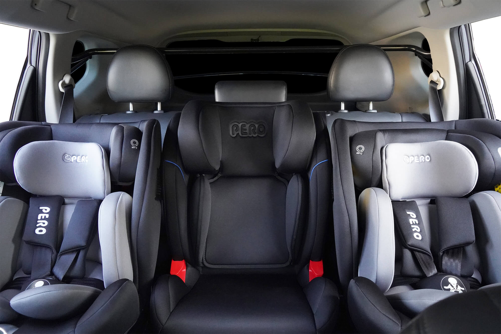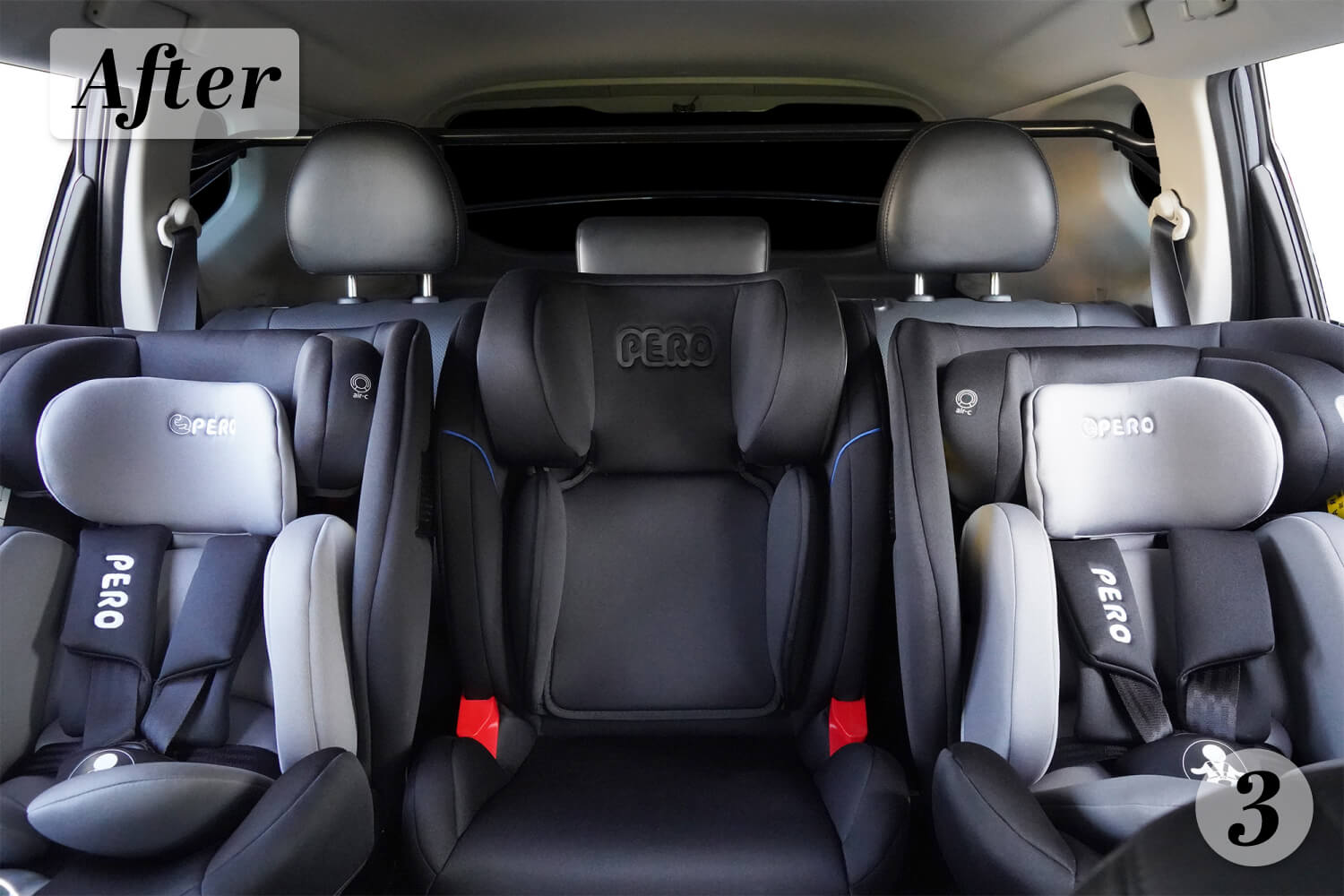 - 圖3:3台 PERO i-Size Cento安全座椅搭配2支WIDFIX PLUS(總延伸量17cm)