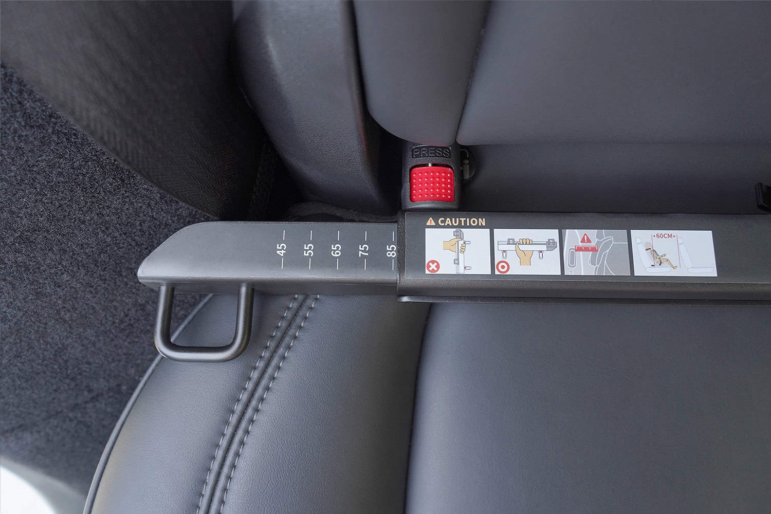Tesla Model Y的後座坐面寬約為130cm,ISOFIX安裝PERO安全座椅後距離車門仍有一小段空間,如有安裝3台安全座椅抑或中間位置有乘客需求的話,在汽車安全座椅未超過45cm寬的情況下,建議可使用汽車安全帶安裝或是參考PERO WIDFIX ISOFIX延伸器。不過Tesla Model Y的ISOFIX裝置設計為椅縫式,第一次安裝可能要花費較多時間。