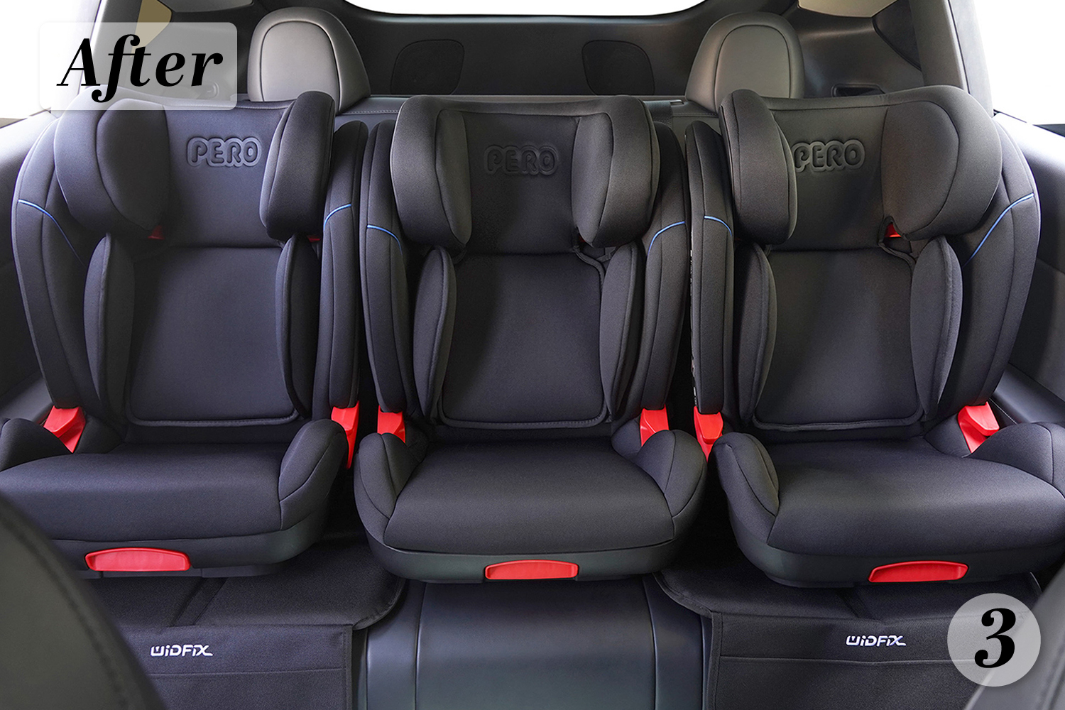 - 圖3:3台 PERO i-Size Cento安全座椅搭配2支WIDFIX PLUS(總延伸量17cm)